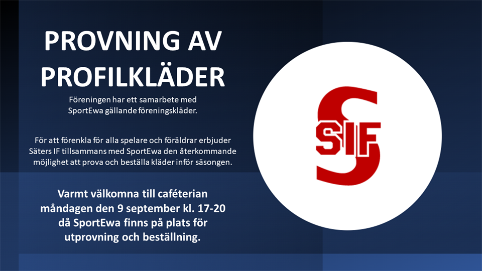 För att förenkla för alla spelare och föräldrar erbjuder Säters IF tillsammans med SportEwa den återkommande möjlighet att prova och beställa kläder inför säsongen.