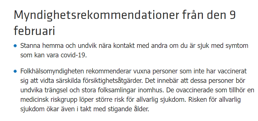 • Pandemirestriktioner tas bort -detta gäller from 9 februari