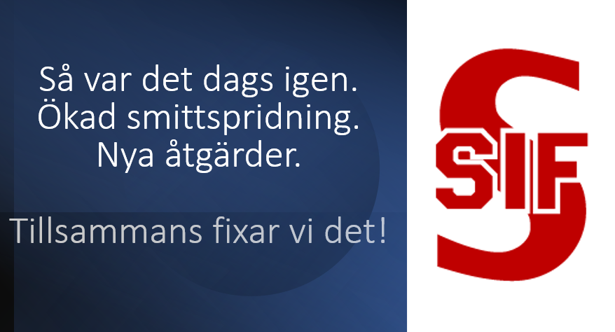 Så var det dag igen. Smittspridningen ökar och vi behöver återigen införa åtgärder. Vårt fokus är fortsatt att göra det vi kan så att våra barn & ungdomar kan fortsätta träna och spela matcher. Den största skillnaden är att vi beslutat att införa krav på vaccinationsbevis efter Dalarnas Ishockeyförbunds rekommendation. Här kan ni ta del av det som vi har att arbeta utifrån; • Vi följer allmänna råd avseende att minska smittspridningen, ex extra god handhygien & avstånd • Alla måste vara fullt friska. Stanna hemma om du har halsont, snuva, feber, hosta eller på något annat sätt inte känner dig helt friskt. Även bekräftat fall i familjen kräver att spelare/ledare stannar hemma tills smittorisken är över. • Endast spelare, ledare och funktionärer får vistas i korridorer & omklädningsrum. • Publik tillåts i anläggningen med ingång via stora entrén. Vid matcher/poolspel krävs uppvisande av vaccinationsbevis. • Matchfunktionärer bär västar som tydliggör att uppdrag utförs. • Cafét är öppet även fortsättningsvis. Med förhoppning att vi alla hjälps åt utifrån det vi tagit beslut om för föreningens bäst, /Styrelsen