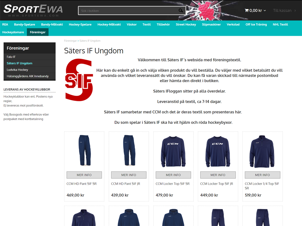 För den som vill finns det möjlighet att köpa föreningskläder via vår samarbetspart SportEwa. Torsdagen den 10 september mellan 17.30-20.30 finns representanter från Sport Ewa på plats i ishallen (Kalles Café) för utprovning av föreningskläder. Drop-in tid under vilken alla föreningens medlemmar har möjlighet att prova utvalda föreningskläder samt även beställa på plats. Vi påminner om vikten att hålla avstånd pga på Covid-19 och uppmanar alla att ha förståelse om det uppstår väntetider. En vädjan är att alla tänker till så att det endast är de personer som behöver vara med vid utprovning och beställning som är på plats. Vi tänker att om vi alla hjälps åt så kommer det fungera fint! Det går även bra att beställa direkt på deras webbplats, mao går det att beställa vid annat tillfälle https://www.sportewa.com/foreningar/saters-if-ungdom